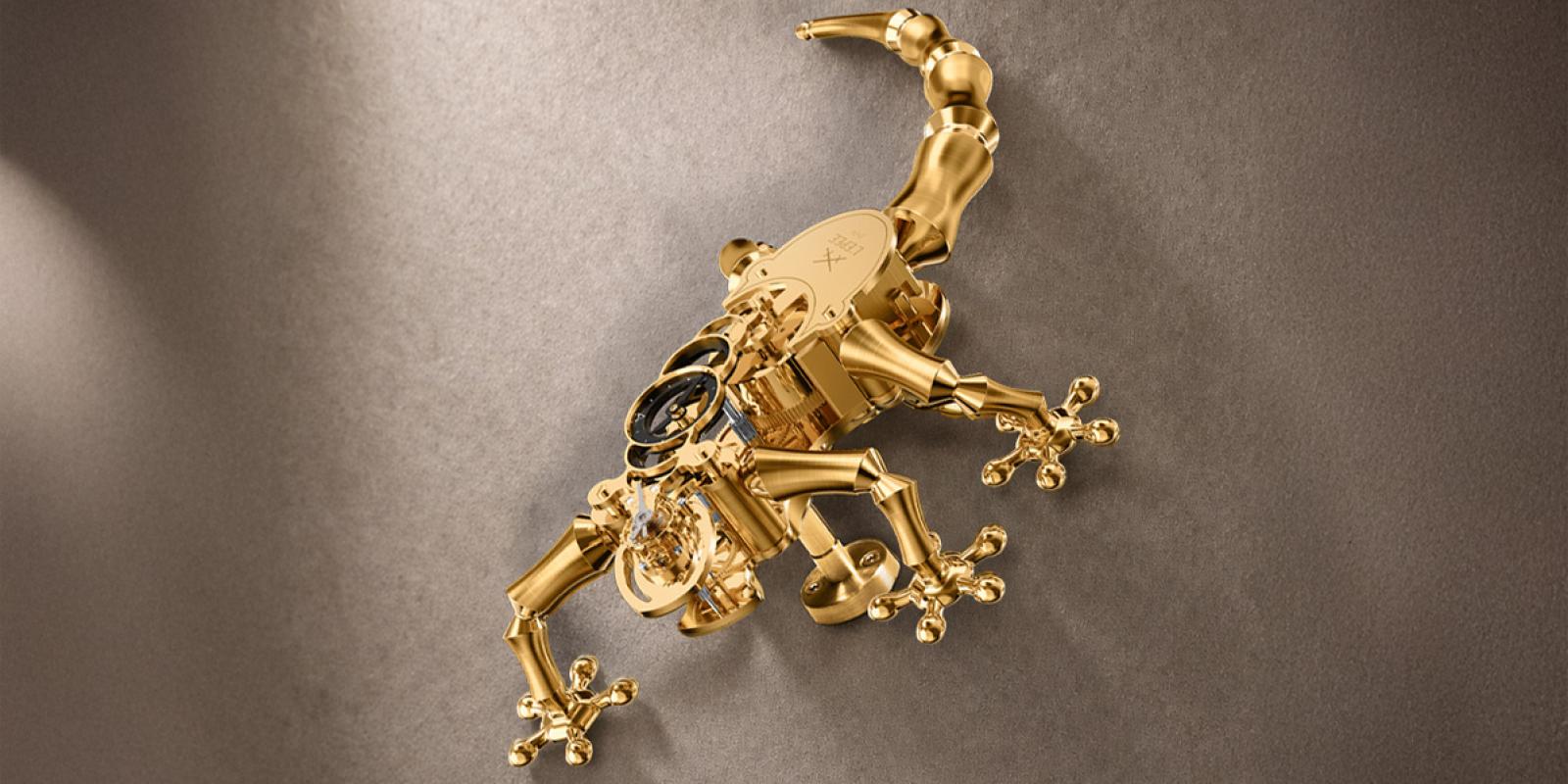 Thanks to millions of microscopic hairs on its toe pads, the animal can grip even the smoothest surfaces, defying gravity with remarkable precision. Inspired by this natural agility, The Gekko by L'Epée 1839 can be mounted on a wall or placed on a table, allowing time to be read either as a wall clock or a table clock. Both timepiece and artistic object, The Gekko inhabits its surroundings like a living sculpture, bringing quiet mechanical life to the space it occupies.