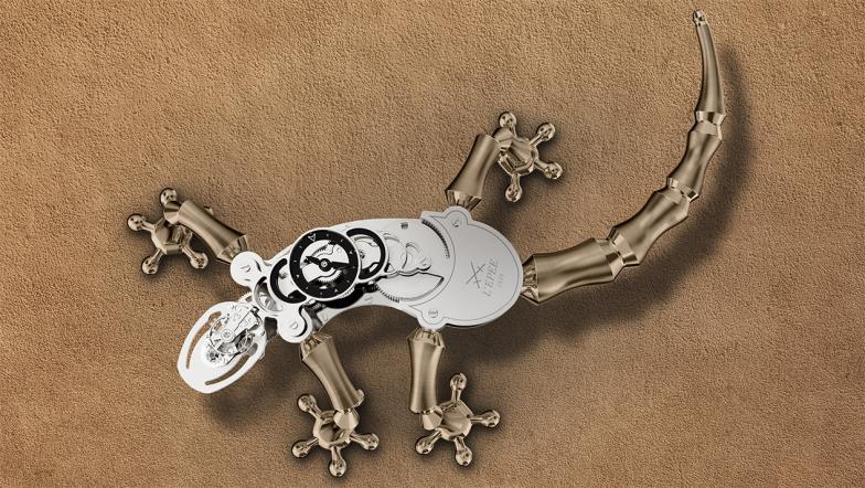 In its fantasies of mechanical creatures, L’Epée 1839 turns to nature with The Gekko, a sculptural timepiece powered by an openworked skeleton movement and shaped after one of nature’s most surprising lizards.