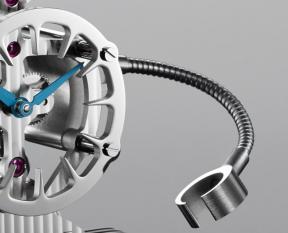 Working from designs supplied by MB&F, L’Epée developed Sherman's body using its eight-day, in-line movement as a structural base. Sherman is no normal clock; he is a robot with a mission: to make the world a happier place.