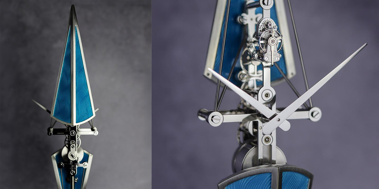 Conceived to bring a sense of serenity into our often fast-paced lives, La Regatta reveals its entire gear train aligned along a single vertical axis. This architectural choice echoes the perfectly upright posture of the rower and the harmony of a crew moving in unison. Positioned at opposite ends of the clock, the barrel and escapement establish a visual and mechanical balance that mirrors the boat’s own stability on the water. In La Regatta, sport and craftsmanship come together in a calm, elegant object, where time flows with rhythm, equilibrium, precision, and grace.